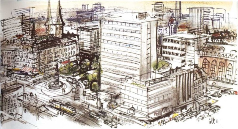 Cuando llegaron a la ciudad, pasaron por un puente que estaba al nivel del tercer piso de los edificios. Helmut pudo ver gente trabajando en las oficinas.