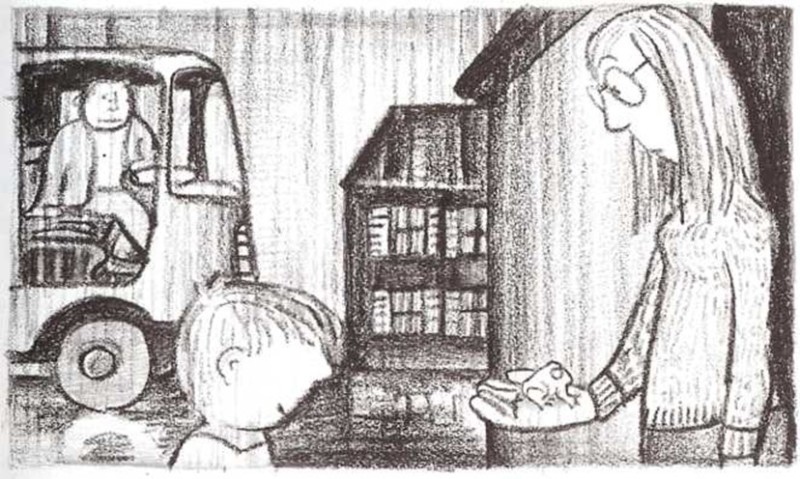 Lustucru desempeñó bien su cometido de paloma mensajera. Inmediatamente se posó en el hombro del padre de Farfounet, quien en seguida vio el mensaje atado a la pata del pájaro y no perdió tiempo en ir a la escuela con el camión.