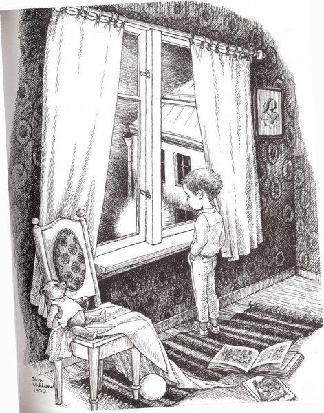Nils llegó corriendo y los dos llevaron la «leña» escaleras abajo, a la habitación, junto al fuego. Nils era tan feliz, que saltaba de júbilo.