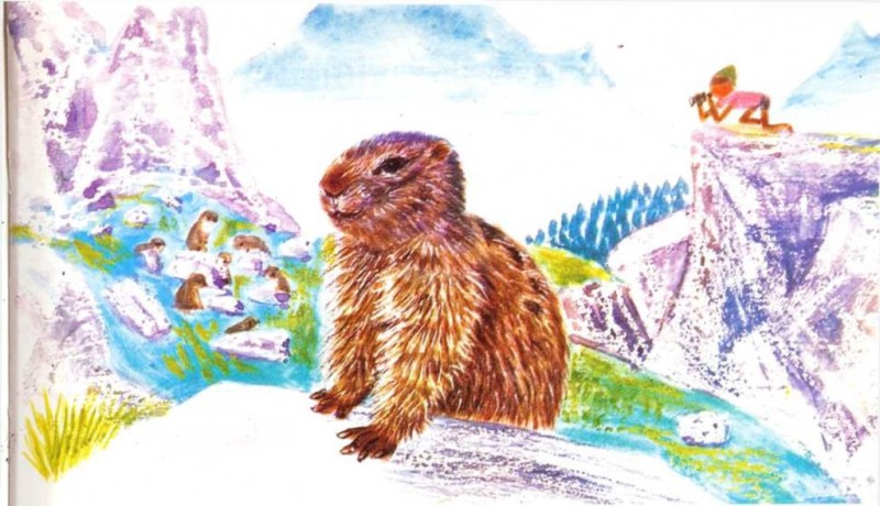 Era muy pequeña, apenas del tamaño de un conejillo. La marmota miraba a Raimi con sus ojos negros, ansiosos, descubriendo sus dientes. Rápidamente Raimi la envolvió con su pañuelo y a toda prisa corrió a la granja.
