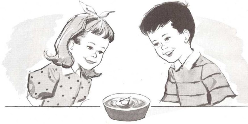 Pon cuidadosamente la aguja sobre el corcho que flota. La aguja irá girando y finalmente se quedará quieta.