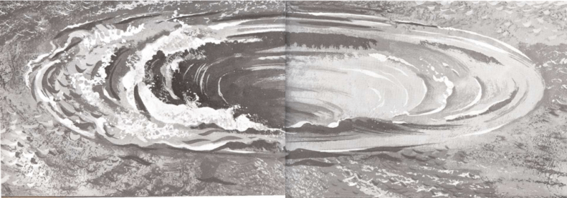 Cuando se encuentran dos corrientes marinas provenientes de direcciones opuestas, el agua gira y forma un gigantesco remolino.