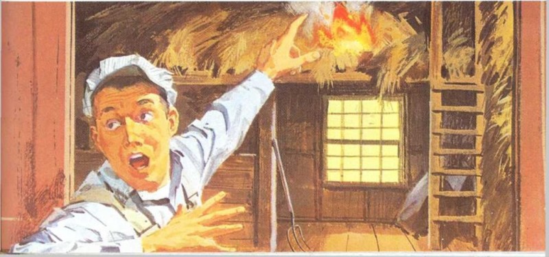 A los pocos segundos, todo el pajar es una bola de fuego, un fuego de ignición espontánea.