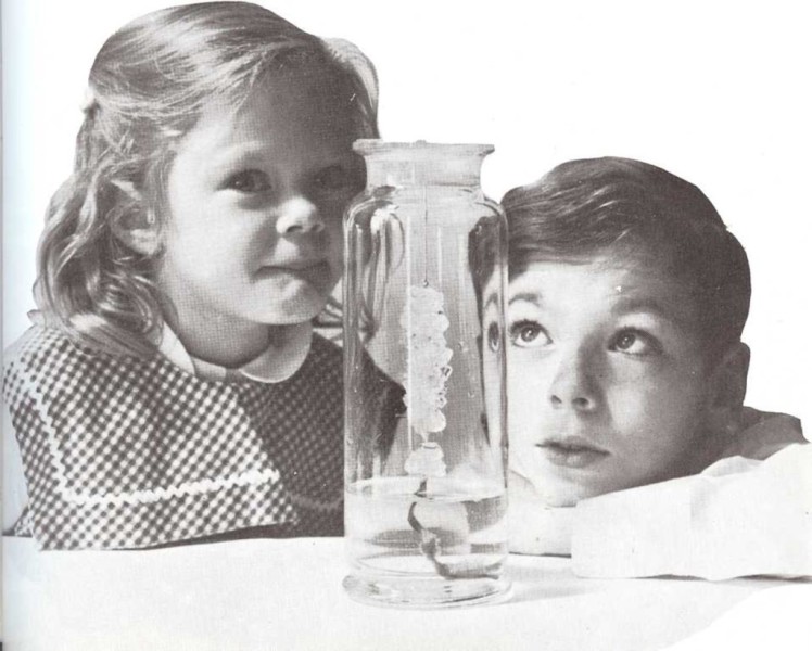 Al cabo de un tiempo verás que en la cuerda se forman cristales de sal, aluminita o potasa.