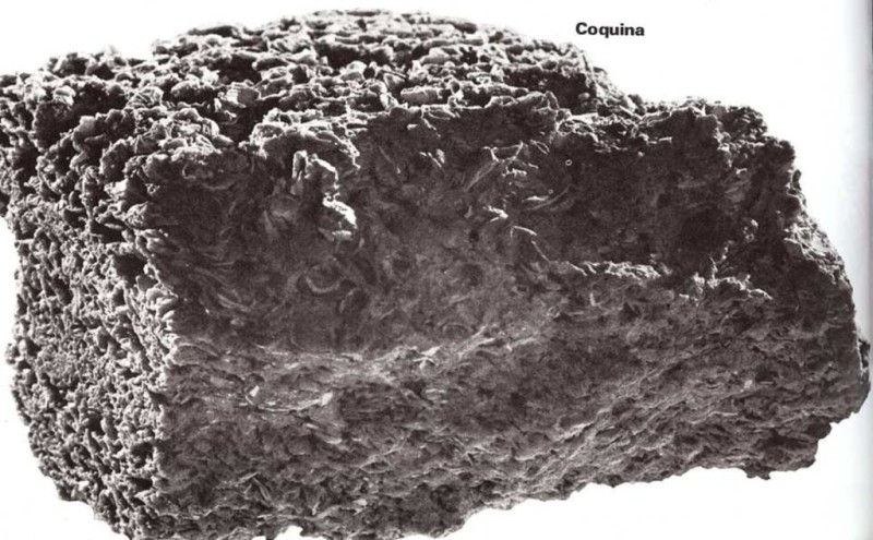 Hoy, en la Florida, se usan piedras de coquina para construir carreteras y edificios. Si vas por las playas de Florida es posible que encuentres pedazos de coquina.