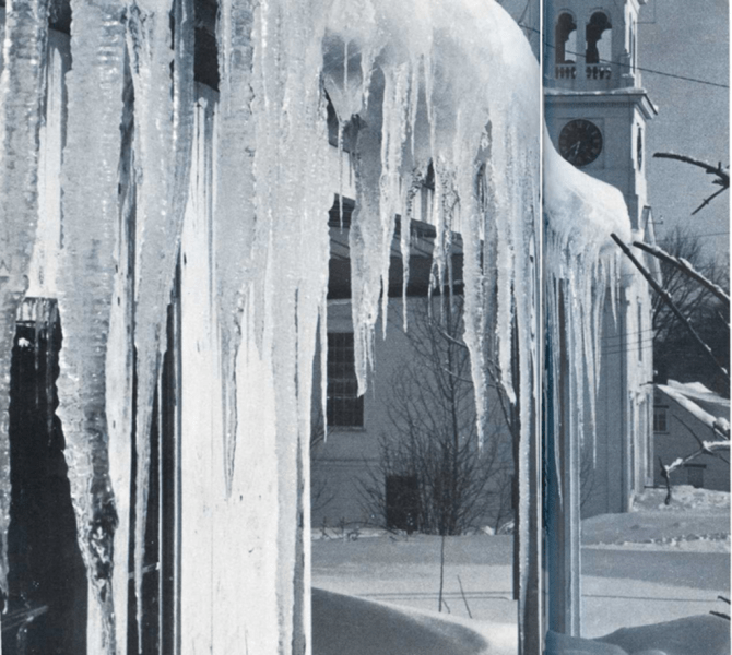 Son los carámbanos que se hacen cuando la nieve se derrite en los tejados y el agua cae por el alero.