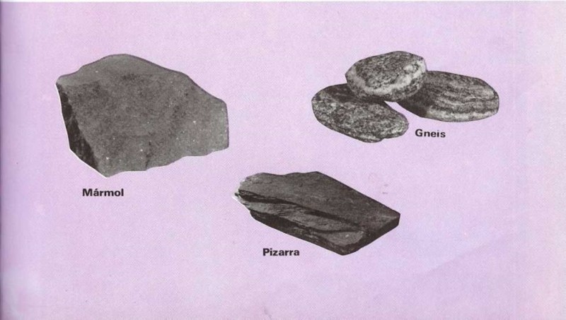 Caliéntense con los gases ardientes que salen del interior de la Tierra y se habrá obtenido una roca llamada mármol, o una llamada pizarra o una llamada gneis.
