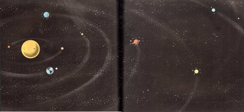 Pero la Tierra y tú no sois los únicos que giráis en el espacio. Los planetas del sistema solar también giran. Y el Sol también gira, como lo hacen los planetas; todos dan vueltas sobre sí mismos, al tiempo que giran alrededor del centro de un grupo de estrellas, llamado Vía Láctea, que, a su vez, gira también en el espacio.