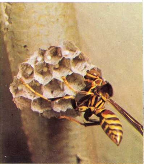 Ciertas avispas construyen sus nidos con tubos de papel. La avispa fabrica el papel masticando madera. |