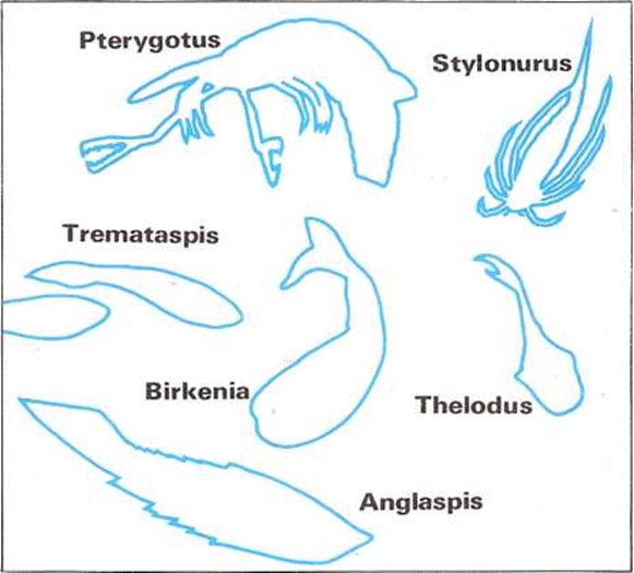 Los peces que nadaban en el mar hace cuatrocientos treinta millones de años estaban cubiertos de una armadura dura y ósea. No tenían mandíbulas como los peces de hoy. Sus bocas eran sólo agujeros en las conchas óseas que cubrían su cabeza.