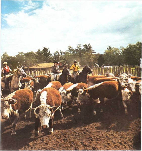 Los bueyes se crían en grandes manadas y de ellos se obtiene la mayor parte de la carne que comemos. |