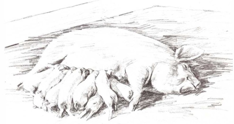 Cerda y cerditos |