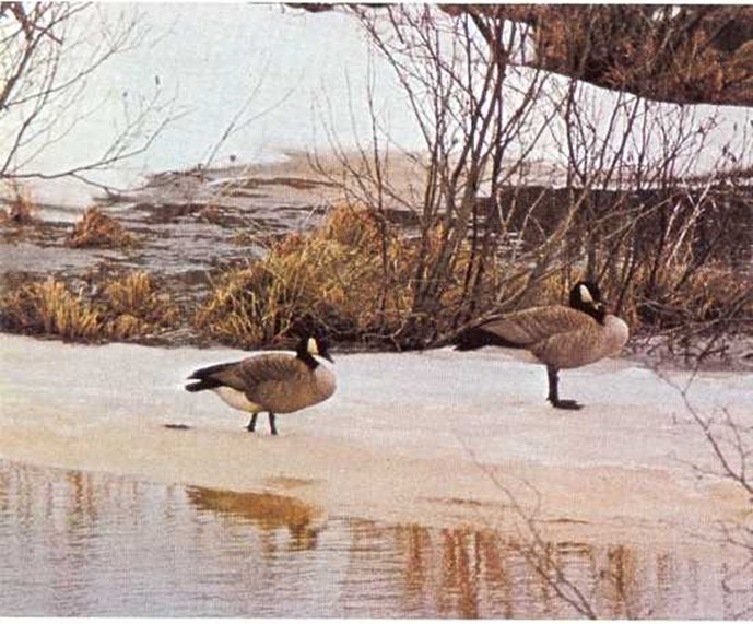 En primavera, una pareja de ocas se picotean mutuamente, como buenos amigos. La hembra, a la izquierda, pronto pondrá huevos.