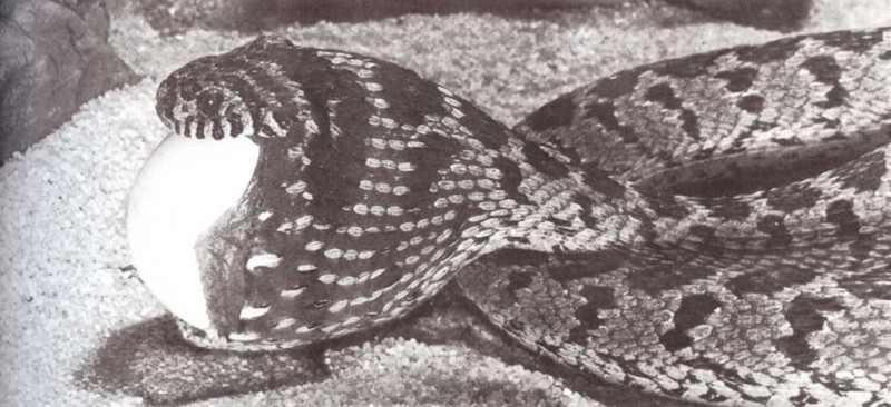 Las mandíbulas de la serpiente son capaces de separarse y su piel de alargarse. El agua de la boca hace que el huevo se haga resbaladizo, para que entre fácilmente.
