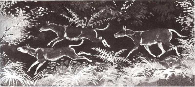 Hace millones de años, había unos caballitos que en lugar de pezuñas tenían pequeños dedos. Vivían en los bosques y comían hojas. Quizá un día se encontraron con comida insuficiente. Quizá el bosque se hizo demasiado peligroso. Pero el caso fue que los caballos aprendieron a vivir en los prados y a comer hierba. Se adaptaron.