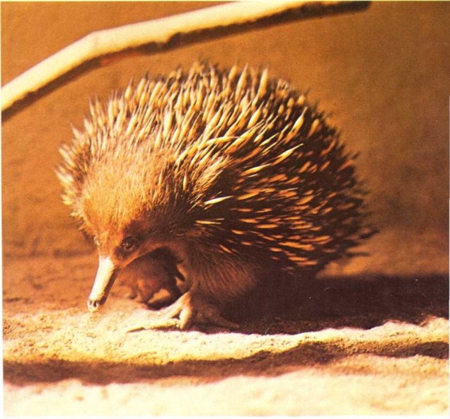 El equidna es un mamífero, pero, como el ornitorrinco, en algunas cosas parece un ave. Un equidna hembra da leche, como los mamíferos.