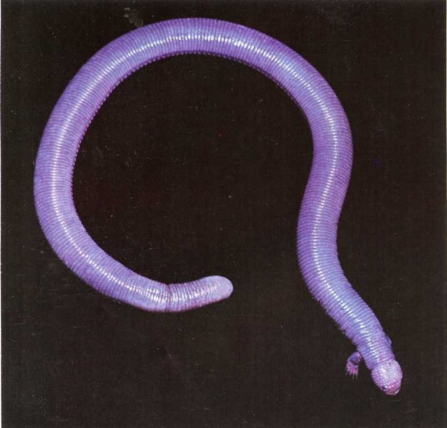 Este extraño lagarto llamado ajolote parece un gusano con dos patitas. Sus dos patitas le sirven para arrastrarse y para excavar agujeros bajo tierra, donde se esconde durante el día. Los ajolotes viven solamente en la Baja California. |
