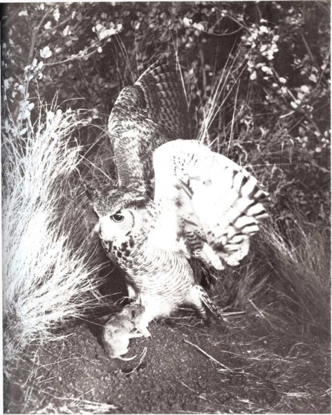 Cerca del ratón, un búho de grandes ojos está posado sobre un árbol. Sus grandes ojos le permiten ver más que los del ratón. Por eso el búho puede ver mejor en la noche que un animal diurno. Sin embargo, si la noche es muy oscura, el búho no ve al ratón. Pero, de repente, el búho se lanza sobre el ratón. El búho tiene un oído tan fino que oye incluso el ruido que hace el ratón al correr. Gracias a su oído, puede atrapar al ratón.
