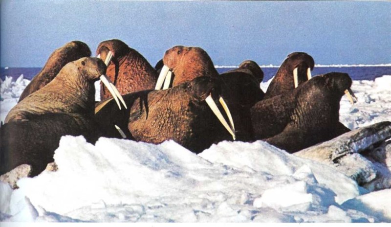 La morsa vive en un mundo de agua fría e islas flotantes de hielo. La morsa se acerca nadando a una de estas islas de hielo, clava sus dos largos dientes o colmillos en el hielo y, apoyándose en ellos, sale del agua. Una vez está fuera se estira al sol sobre el hielo, como tú te tumbas en una playa soleada. La morsa se conserva caliente porque debajo de su piel fuerte y dura tiene una gruesa capa de grasa.
