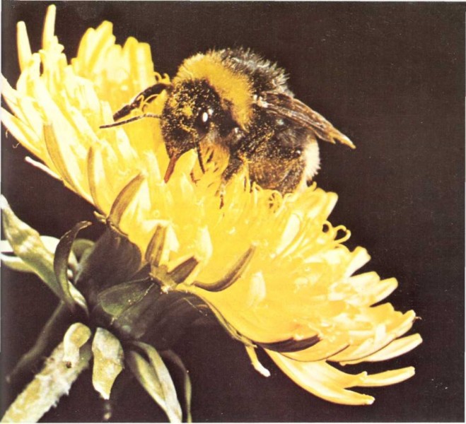 Cuando una abeja se posa en una flor para coger alimento, su cuerpo queda lleno de un polvo amarillo llamado polen. Cuando esta misma abeja pasa por otra flor a coger alimento, el polen que lleva pegado a su cuerpo se queda en esta nueva flor y hace que nazcan nuevas semillas.