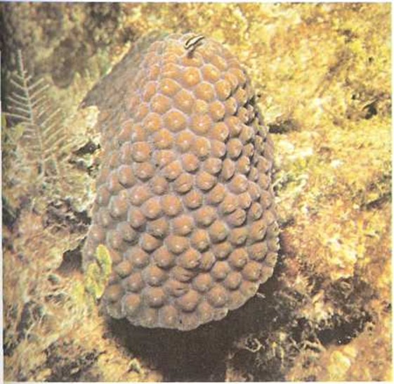 Las copas de piedrecitas se llaman coral. Cuando estos animales parecidos a flores están dentro de las copas, el coral parece un campo de flores. Los ani-malitos son de varios colores. Por eso el coral puede ser rojo, rosa, naranja, azul, verde o púrpura. El coral puede tener la forma de un arbusto, de un balón redondo o de un encaje.