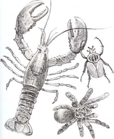 | Artrópodos Si un animal tiene más de cuatro patas articuladas y un caparazón duro alrededor de su cuerpo, pertenece a la clase de los artrópodos.