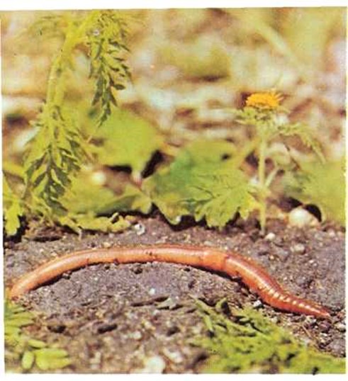 El gusano come mientras se arrastra por la tierra. Se alimenta con restos de plantas podridas.