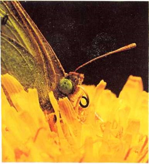 La lengua de la mariposa es hueca como una paja y normalmente está enrollada. Cuando tiene hambre, desenrolla la lengua, la pone dentro de una flor y chupa su néctar.
