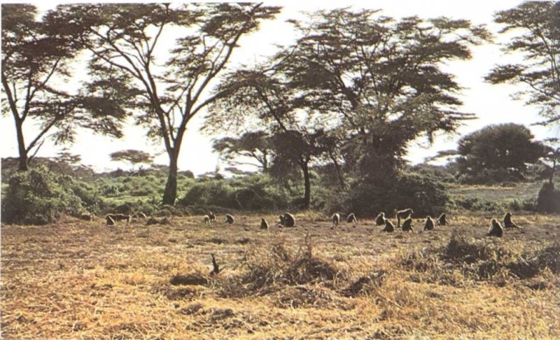 Cuando un papión ve u oye algo extraño emite un fuerte chillido. Entonces, todos los papiones se apresuran a subir a los árboles. Gracias al aviso de un papión, todos se han puesto a salvo.