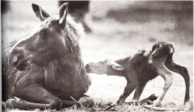 El alce nace con los ojos abiertos. Puede andar al poco tiempo de nacer.
