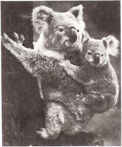 Aunque estas crías son pequeñas y débiles al principio, crecen hasta convertirse en animales grandes y fuertes. La zarigüeya adulta es tan grande como un gato. El koala mide alrededor de un metro. El canguro adulto es el mayor de todos. Es casi tan alto como un hombre bajo.