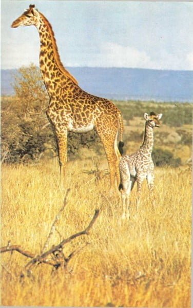 La jirafa madre tiene un cuello muy largo. Quizá pensarás que hay una gran cantidad de huesos en tan largo cuello. Pero la jirafa madre no tiene más huesos en su cuello de los que tú tienes en el tuyo. Sus huesos son, simplemente, más largos.