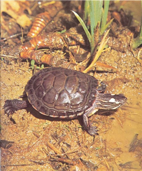 Parece como si un pintor hubiera pintado rayas y manchas en su cabeza. Por esto, esta clase de tortuga se llama tortuga pintada.