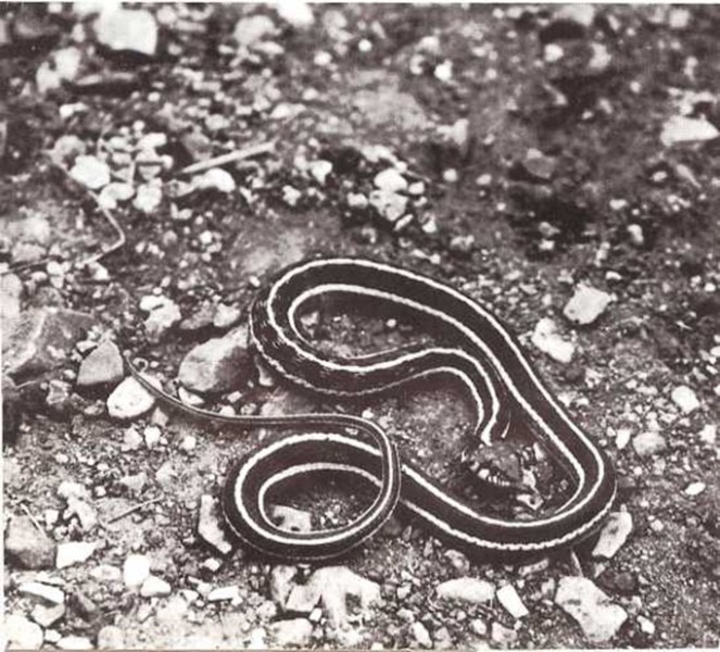 Serpiente de jarretera Las serpientes no venenosas son inofensivas para las personas. Comen gusanos, sapos, ranas e insectos. |