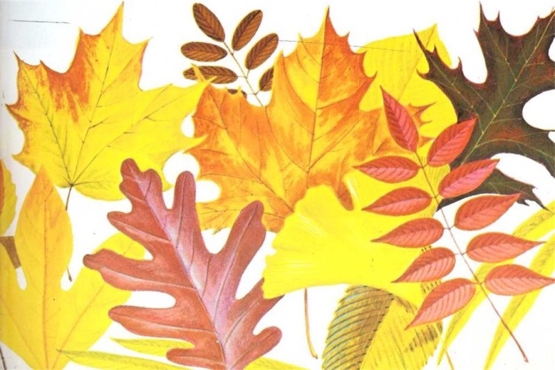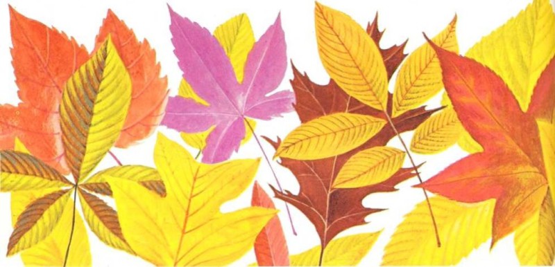 En el interior de cada una de las células de una hoja hay pequeños «paquetes» llamados cloroplastos. Están llenos de colores. En verano, el color verde enmascara a los demás. |