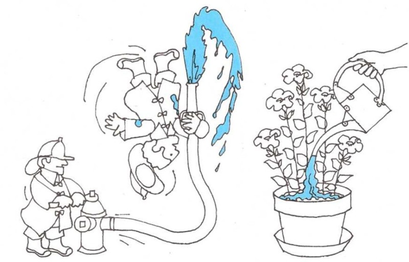 ¿Has visto alguna vez a los bomberos apagando fuego con una manguera? La manguera está tiesa e hinchada cuando el agua pasa por su interior. Pero cuando el fuego está apagado y los bomberos cierran el paso del agua, la manguera se arruga.
