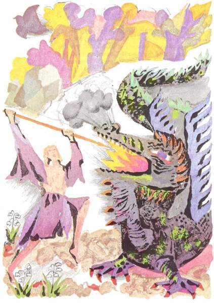 Pero en aquel valle vivía también un dragón llamado Tentación. Este dragón era un animal enorme que respiraba fuego, parecía una serpiente y tenía alas como un murciélago. El dragón Tentación atacaba a san Leonardo, pero el santo lo ahuyentaba. San Leonardo y el dragón libraron muchas batallas, de las que el santo resultó siempre vencedor. San Leonardo hacía retirar al dragón cada vez más hacia los bosques. Finalmente, el dragón desapareció del valle para siempre.