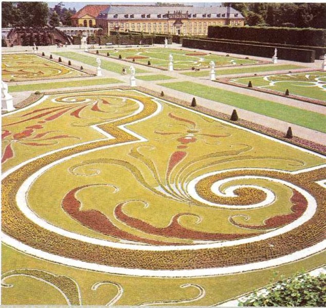 Los jardines geométricos se plantan según diseños cuidadosos. Las flores se distribuyen en cuadrados, círculos o formas atractivas. Se suelen podar los arbustos dándoles forma de rombos, cuadrados, esferas, etc. Los caminos y sendas son largos y de orillas recortadas cuando atraviesan el césped.