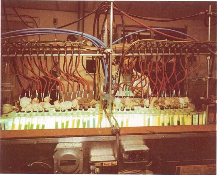 Clórela desarrollándose en un laboratorio En este laboratorio, unos químicos trabajan para elaborar nuevos alimentos a partir de una planta acuática llamada clórela. |