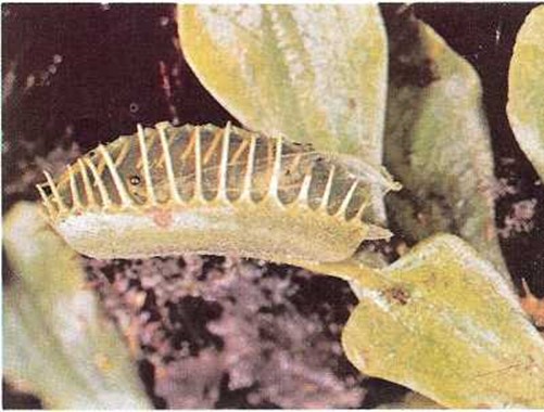 La hoja se ha cerrado en torno al insecto y la atrapamoscas empieza a digerirlo lentamente. |