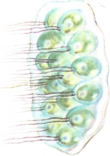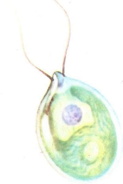 Una clase de estas criaturas parece un huevo de color verde con dos filamentos en un extremo. Tiene una mancha roja que es una especie de ojo para ver la luz. La criatura se mueve agitando los filamentos. ¿Es un animal?