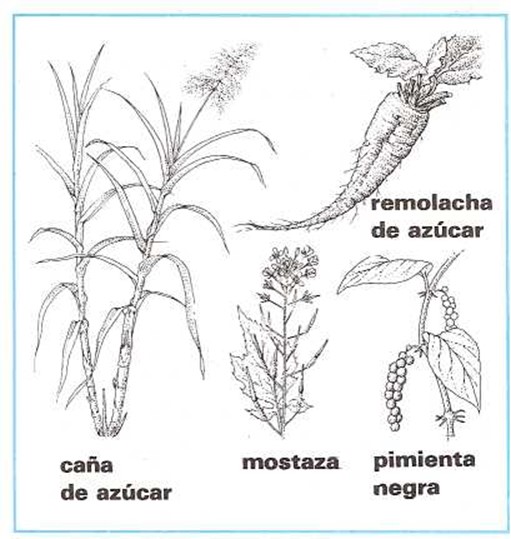El azúcar, y la miel proceden de las plantas. También la pimienta, la mostaza y otras especias. |