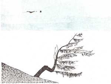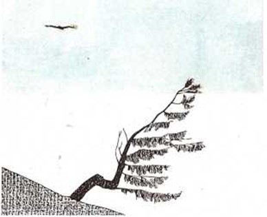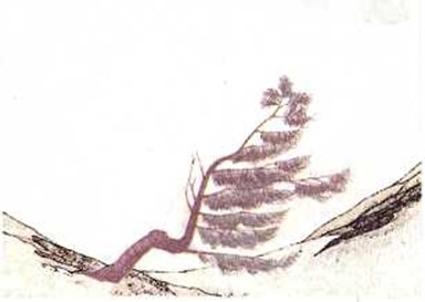 Cuando el árbol es joven, la nieve lo cubre cada invierno. Pero conforme vaya creciendo, su parte alta sobresaldrá de la nieve. Muerta por los vientos helados de la montaña, la parte alta caerá.