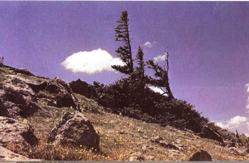 Los árboles del límite Cada invierno, la nieve cubre los árboles que crecen junto al límite de los árboles. Aproximadamente, hay tanta nieve en un invierno como en el siguiente.