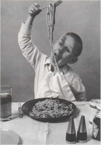 Los fideos para sopa son duros y delgados cuando se extraen del paquete. Pero antes de introducirlos en ese paquete parecían fideos ya cocidos, pues eran blandos y suaves como cuando los haces girar en el tenedor. En las fábricas de fideos trabajan muchas máquinas. Una de ellas mezcla la harina con agua hirviendo. Esta mezcla pasa a otra máquina en la que es transformada en una masa. Una tercera máquina prensa esta masa y la hace pasar por unos agujeritos que le dan la forma de largos fideos. |