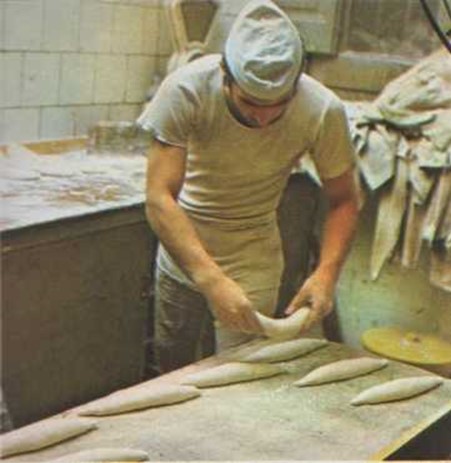 Una vez amasada la harina con agua y un poco de sal, se deposita la masa en una artesa durante unas horas para que fermente. Si te permitieran entrar en una panadería verías que esa masa aumenta poco a poco de volumen, debido a que se desprende un gas llamado anhídrido carbónico, y se calienta ligeramente mientras se efectúa el proceso químico de la fermentación. Ésta hace que la harina se haga esponjosa y más digerible. Después se introduce la masa en una máquina para ser cortada en piezas del mismo peso.