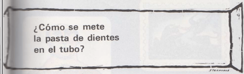 Para sacar del tubo la pasta dentífrica quitas el tapón de rosca y aprietas. Pero, para introducirla, una máquina ha tenido que ajustar el tapón y, después, presionar el dentífrico. El secreto está en que la máquina introduce la pasta por el fondo del tubo, que ya tiene puesto el tapón. Centenares de tubos se colocan derechos sobre una larga plataforma que se va moviendo. Cuando uno de ellos se sitúa frente a una espita, la pasta sale con fuerza por ella y entra en el tubo. Y así pasa otro tubo y otro; una larga hilera de ellos se llena en un abrir y cerrar de ojos. Después, los tubos de dentífrico desfilan ante una especie de tenaza que aprieta su parte inferior y la cierra herméticamente. Por último, se van depositando uno a uno en cajas, listos para ser distribuidos a las tiendas, en las que tu madre podrá comprarlos. |