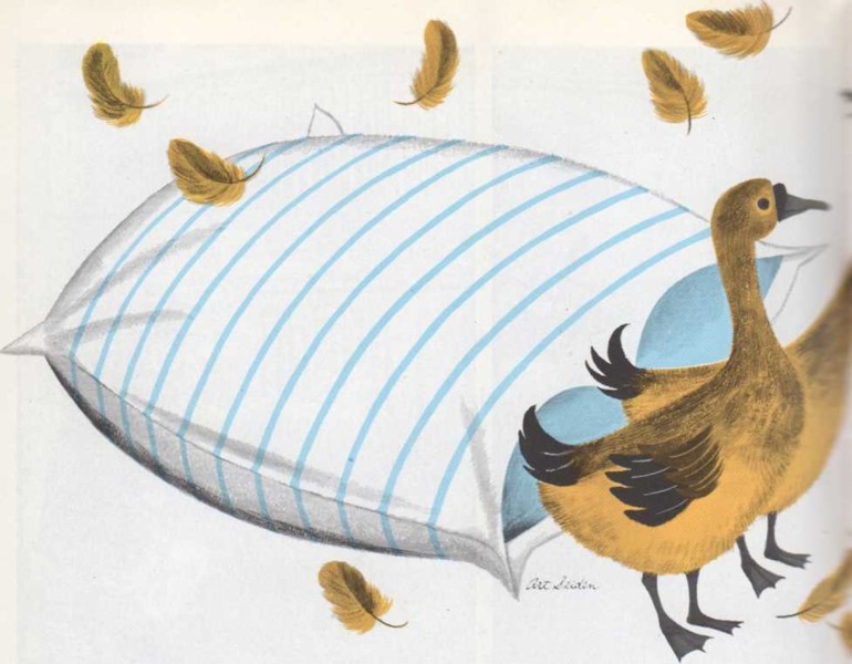 Muchas almohadas se rellenan con suaves plumas de ganso. Los hombres que fabrican aquéllas limpian las plumas, las ponen a secar y las encierran en un saco. Pero las plumas de ganso no son el único material de relleno que se usa para una almohada. Con el mismo fin se emplean también plumas de pato, de cisne, lana y espuma de nilón.