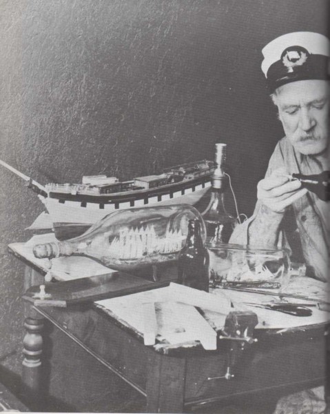 Hay barcos que navegan por el mar, otros que cruzan lagos, otros que flotan en una bañera y otros que permanecen inmóviles… dentro de una botella. Pero, ¿cómo pueden meterse? Si deseas introducir en una botella un pequeño modelo de nave, tienes que construirlo antes fuera de la misma. Una vez terminado, fija los palos en sus lugares respectivos, pero colocándolos horizontalmente sobre el puente. Después, ata un hilo al extremo del mástil. Ahora bien, la nave ha de ser tan pequeña que el casco pueda entrar por el cuello de la botella. Cuando ya está dentro, un tirón del hilo levanta el mástil, el cual arrastra consigo el aparejo y éste, a su vez, endereza los demás palos. |