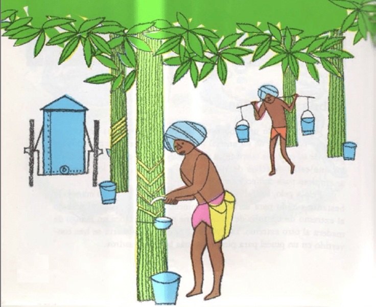 ¿Sabías que usas un poco de jugo de un árbol cuando borras con goma las líneas escritas a lápiz? La goma se fabrica con látex, esto es, el jugo de los árboles del caucho. El látex es un líquido espeso cuando sale del árbol, pero unas máquinas eliminan su humedad y lo transforman en una masa sólida. Otras máquinas prensan esta materia hasta convertirla en un gran bloque. Y otras lo cortan después en pequeñas piezas. Pero, antes de utilizar esas piezas de goma, hay que someterlas al calor, es decir, vulcanizarlas. El calor da resistencia a las gomas de borrar, de manera que no se reblandezcan en verano, ni se vuelvan duras o quebradizas en invierno. |